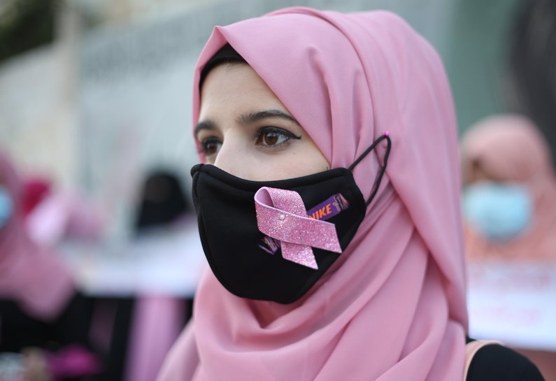 تشير وزارة الصحة الفلسطينية إلى أن عدد حالات الإصابة بسرطان الثدي شكّل 34.3% من كافة حالات الإصابة بالسرطان بين النساء في غزة في عام 2021م، كما تسبب سرطان الثدي في 13.3% من كافة حالات الوفاة بالسرطان بين عامي 2016م و2020م. وبالرغم من كون سرطان الثدي أكثر أنواع السرطان قابلية للعلاج إلا أن القيود التي تفرضها إسرائيل على قطاع غزة—بما فيها الإغلاق والحصار المستمران لأكثر من 15 عاماً—تعني أن العراقيل التي يواجهها المرضى من غزة في محاولة تلقي علاجهم منقطعة النظير حول العالم.