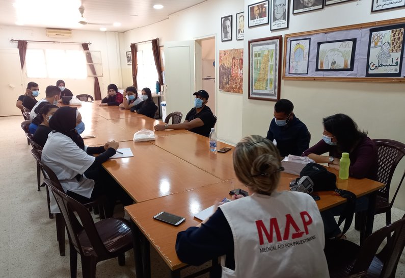 Young Palestinian refugees participating in a focus group as part of a MAP-supported peer education project.