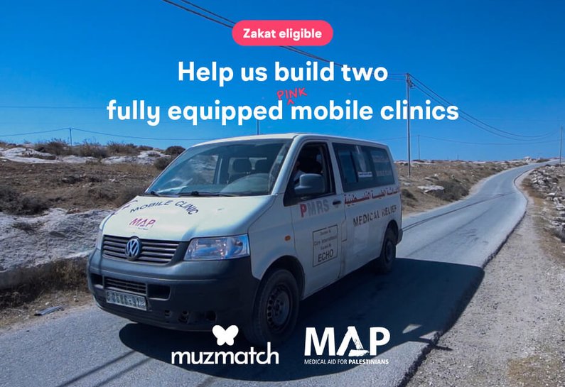 Without the mobile clinic services provided by MAP through our local partner, the Palestinian Medical Relief Society (PMRS), Palestinians in these highly marginalised communities would struggle to access the vital medication and primary health services they need. Now with Muzmatch's support, we can expand our reach and will be able to purchase, fully equip and customise two mobile health clinic vans to support the health and dignity of these communities.