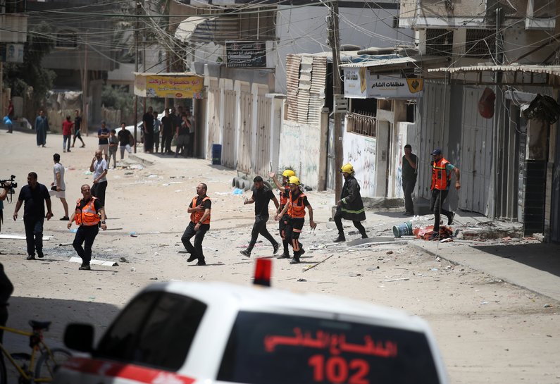 Photo: Emergency response teams during Israel's attacks on Gaza from 7-9 August 2022. (Credit: Mohammed Zaanoun).