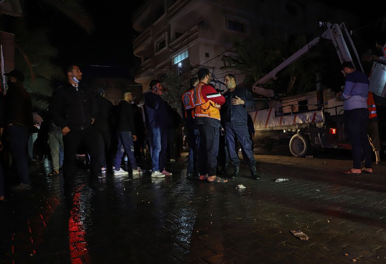 Photo: People gather around the scene of a massive fire in Jabalia refugee camp in northern Gaza, November 17, 2022. (Credit: Rizek Abdeljawad/Xinhua/Alamy Live News).