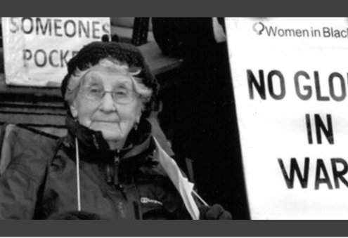 Although the Women in Black vigils deal with peace throughout the world, she is remembered for her love and concern especially for the people of Palestine. On a banner made this year for an event on Women for Peace initiated by Penny Stone her name is sewn with the Palestinian flag behind it. The silence of the vigil was important to Runa, though she would talk as much as anyone at any tea afterwards, and sometimes a meal together.