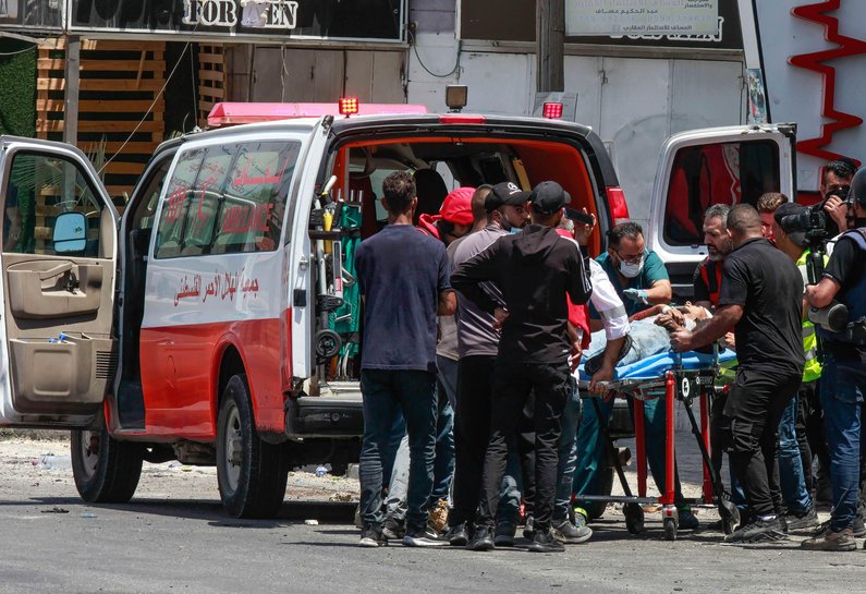 Photo: Medics take a wounded Palestinian man into an ambulance after he was shot in the head by Israeli forces in the Jenin refugee camp. (Credit: SOPA Images Limited/Alamy Live News).