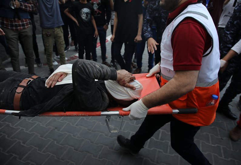 photo: Injured Palestinians arrive in Shifa hospital (credit: Mohammed Zaanoun)
