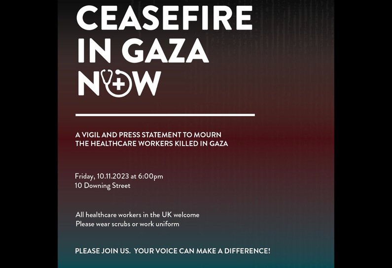 The vigil is being organised to call on Rishi Sunak to push for an urgent ceasefire and was held in honour of the healthcare workers, medics and hospital staff killed by Israel's bombardment of Gaza.