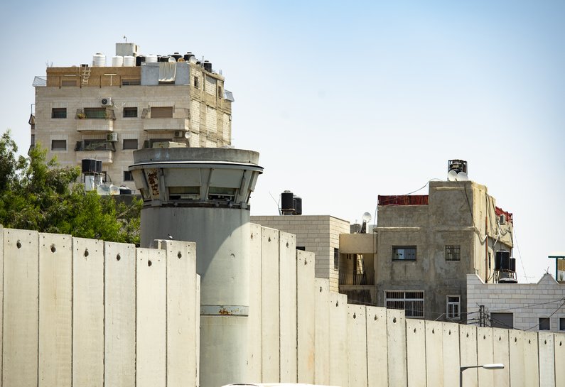 Photo: Israeli military watchtower in Shu'fat refugee camp, occupied East Jerusalem. (Credit: William Parry).
