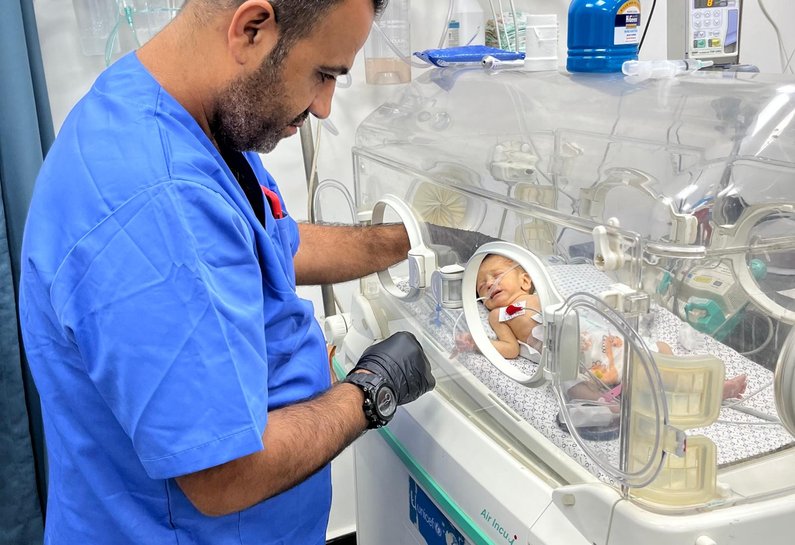Photo: Newborn babies who have been evacuated from the Kamal Adwan Hospital to the Patient Friends Hospital in Gaza City.