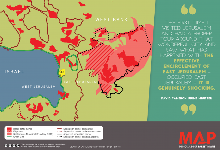 Prime Minister David Cameron recently told Parliament that he was “genuinely shocked” by the “effective encirclement” of East Jerusalem by Israel. This was prompted by a question from Imran Hussain MP, who recently witnessed the effects of the occupation on Palestinians in the West Bank on a delegation organised by Medical Aid for Palestinians and our partner, the Council for Arab-British Understanding (Caabu).