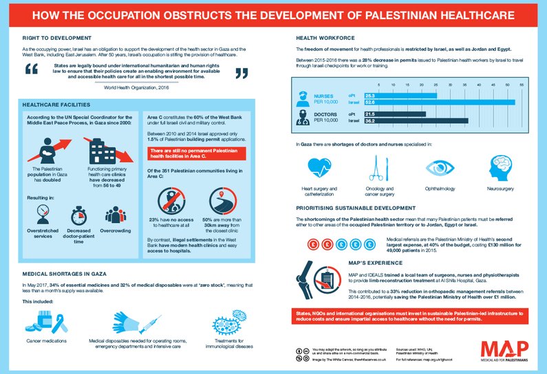 This infographic was produced as part of Chapter 4 of our ‘Health Under Occupation’ briefing series, which MAP is releasing to mark the 50th anniversary of Israel’s military occupation of the occupied Palestinian territory. You can read the four briefings below.