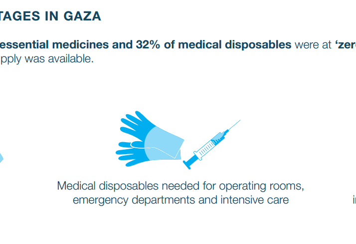 This is particularly apparent in Gaza, where the blockade’s stifling effect on the economy, ongoing political divisions with the West Bank, and Israel’s restrictions on the import of items it deems to have a ‘dual use’ limit the availability of essential medicines and equipment. Consequently, hospitals and clinics in Gaza have had to deal with constant stock shortages.