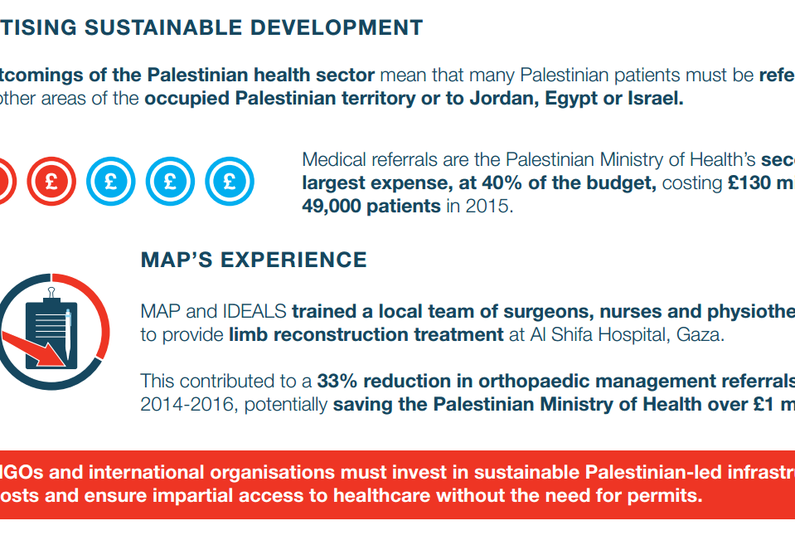 States, NGOs and international organisations can help address the development of Palestinian health sector by prioritising investment in sustainable Palestinian-led health infrastructure, and ensuring that the root causes of the obstacles to Palestinian healthcare – including the closure and blockade of Gaza and the occupation of Palestinian territory – are brought to an end.