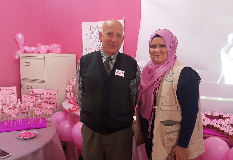 In Lebanon, MAP joined an open day organised by the local partner for our Reproductive Health project, Naba’a, as part of their Breast Cancer Awareness Month campaign in the Palestinian refugee camps of Ein el Helweh and Rashidieh. This campaign has included public meetings with demonstrations of self-examination, free consultations with the project’s health experts, and referrals for a diagnostic mammogram – for free – if needed.