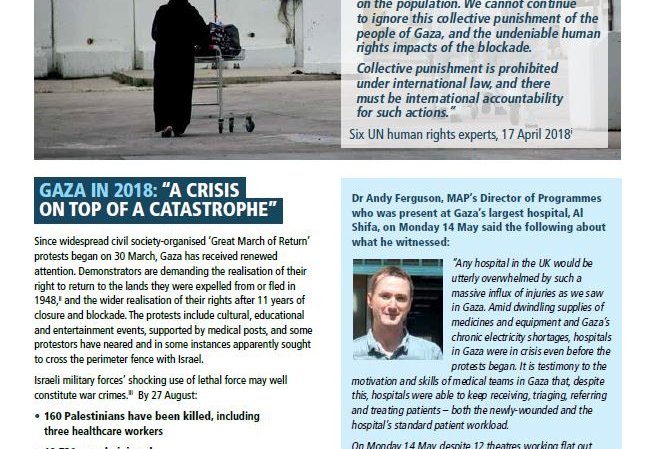 MAP shares that view. Chronic needs and injustices must be addressed now. The people of Gaza cannot wait for a successful “Peace Process” for the closure to be lifted and international law adhered to.