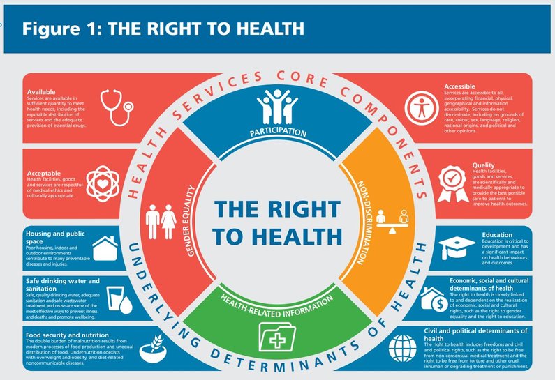 “The right to the highest attainable standard of health is recognized in International Human Rights Law and International Humanitarian Law and places a number of obligations on States that include ensuring access to health facilities, goods and services on a non-discriminatory basis, especially for vulnerable or marginalized groups; the provision of essential drugs; and the equitable distribution of health services. The obligations on States also pertain to the underlying determinants of health, such as ensuring access to minimal essential food that is nutritionally adequate and safe, as well as access to shelter, housing and sanitation and an adequate supply of safe drinking water.
