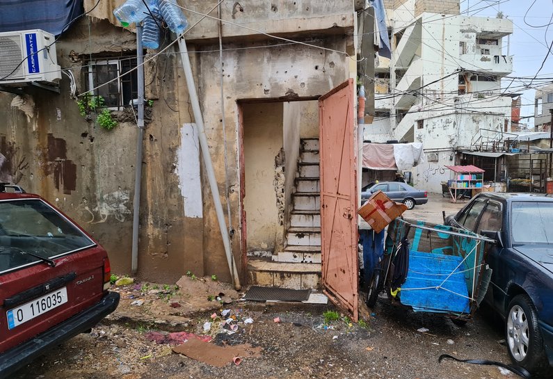 In a single room house in the alleys of Ein el Helweh refugee camp, in the south of Lebanon, Katia* lives with her husband, Ahmad*, and four young children. A fierce storm was hitting Lebanon when I visited the family and the room they are living in was freezing cold with no heating.