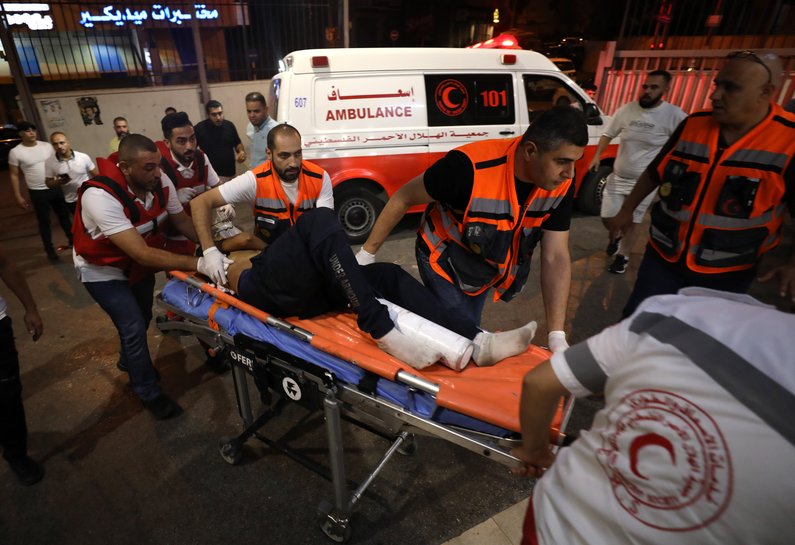Photo: Paramedics transport wounded Palestinians to hospitals who were injured during Israeli military and settler violence nearby Joseph’s Tomb in Nablus. (Credit: Ayman Nobani).